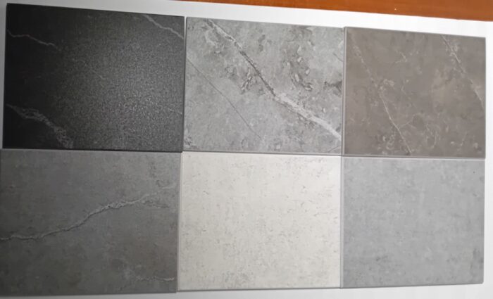 6 piastrelle 12x15 cm in gres porcellanato nei toni del grigio, x lavori creativi.