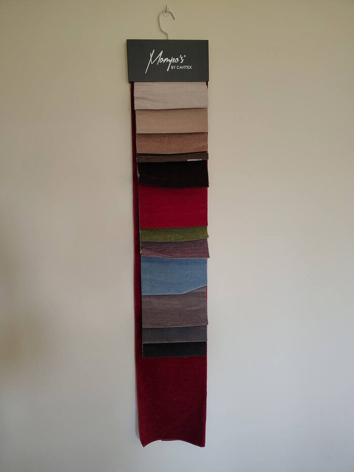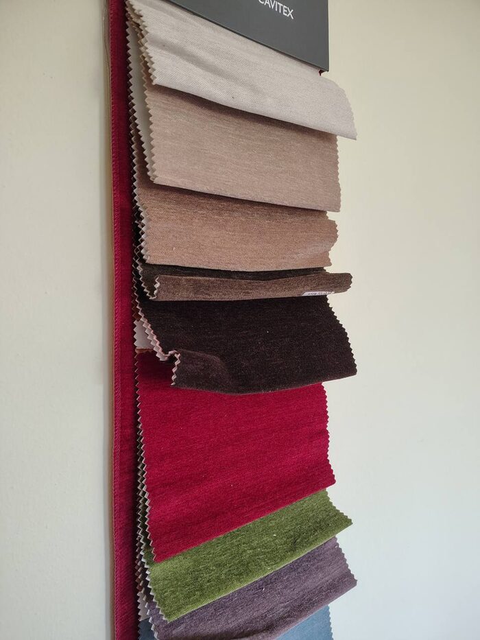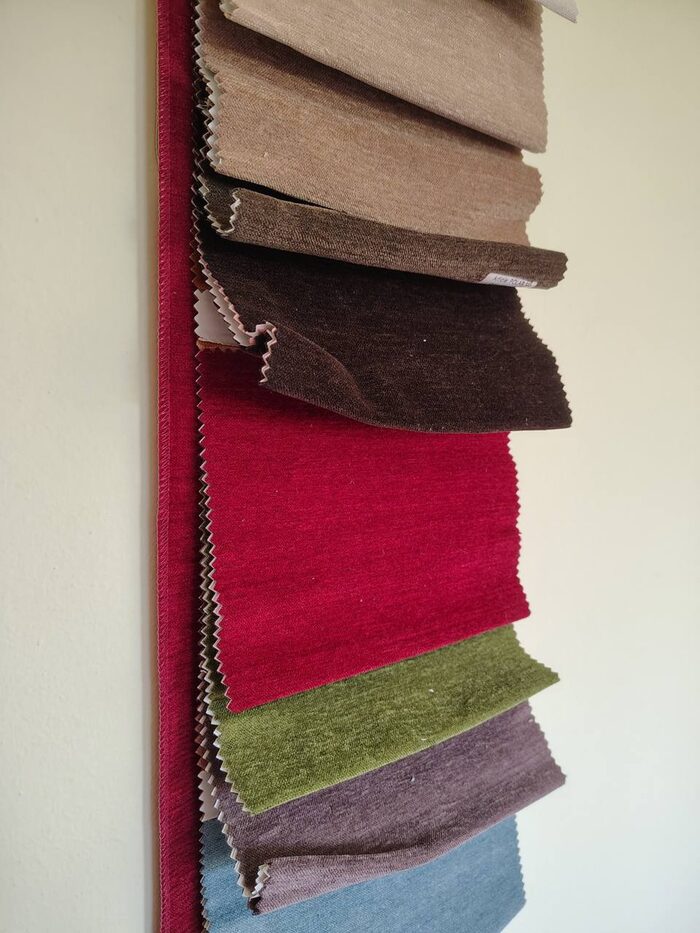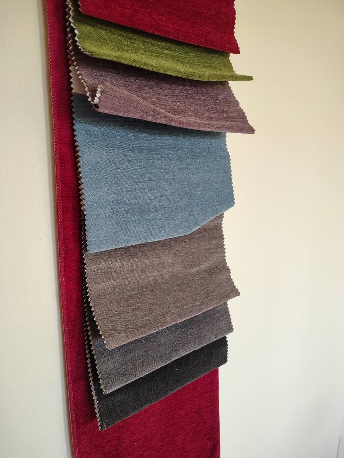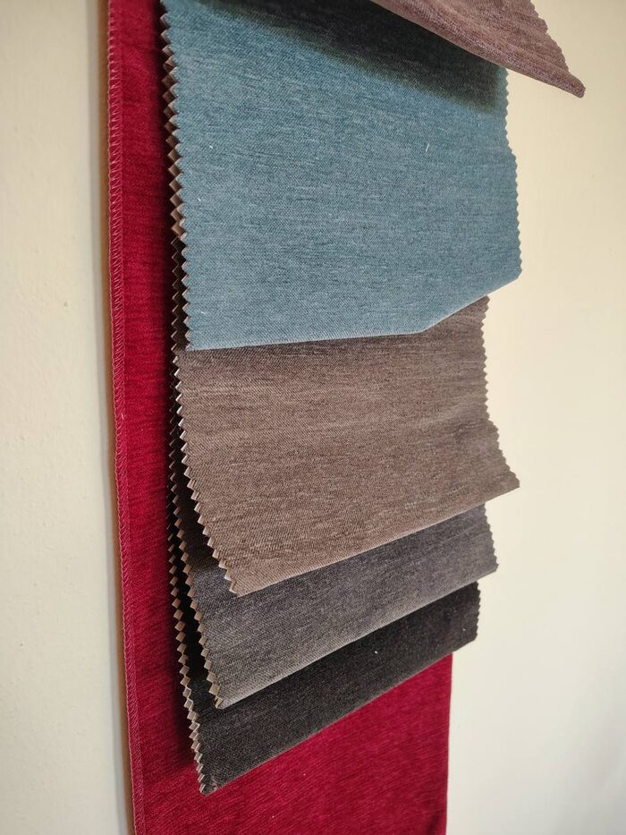 Campionario stoffa per divani. Il pezzo più grande misura 110 x 39 cm gli altri campioni di altri colori 14 x 20 cm circa.