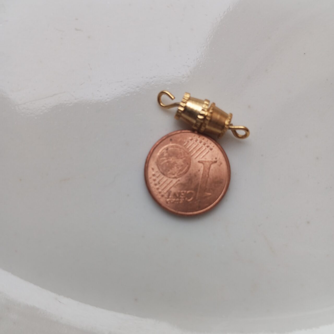 chiusura a vite dorata,credo sia nuova,ma scrivo usata pocomoneta per le proporzioni .