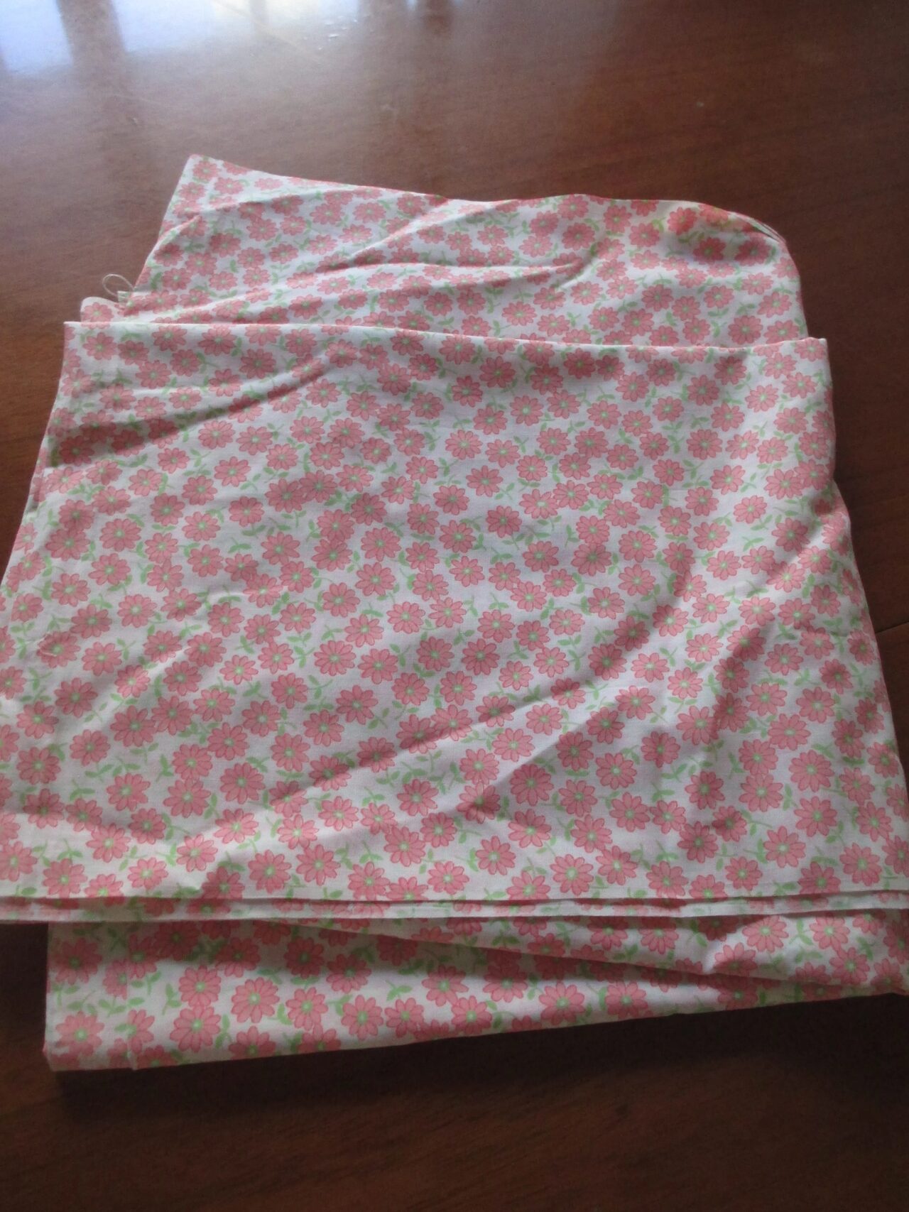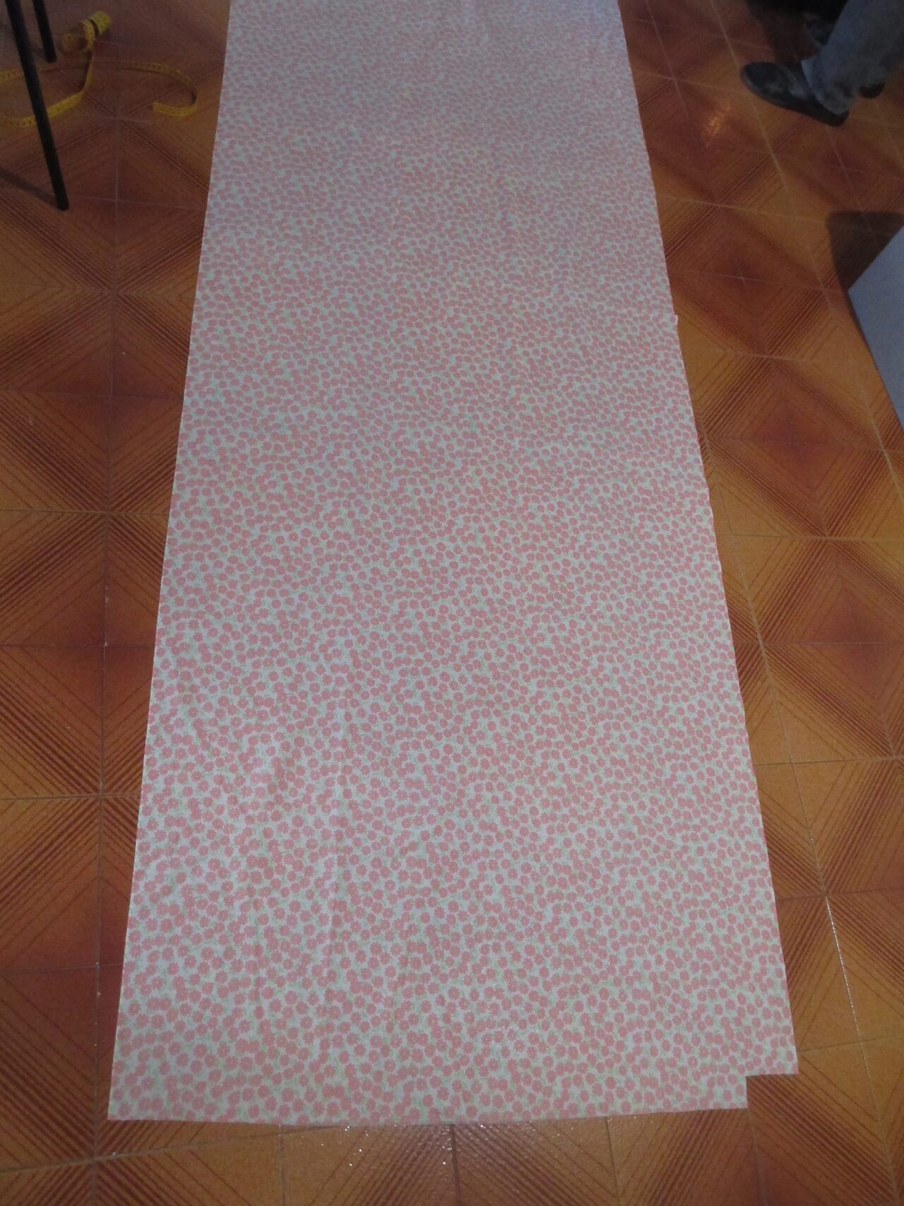 Stoffa leggera in cotone con stampa di fiori rosa.C'è un angolino ritagliato.Misure approssimative: 262x86cm .