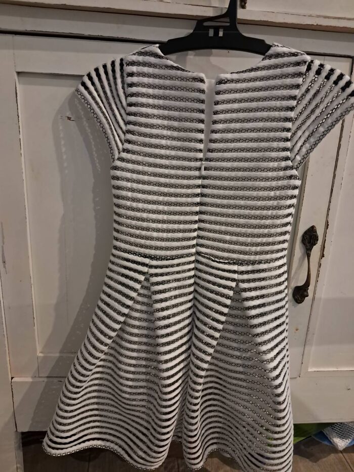 Abitino mai indossato, da cerimonia, adatto alla mezza stagione. In poliestere con fodera in cotone. Età circa 6 anni. .