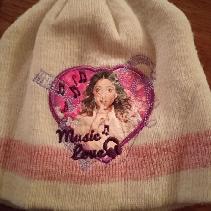 Taglia 54, 100% acrilico (vedi etichetta, seconda foto). Stampa Violeta Music Love un po'' usurata dai lavaggi, come da foto. Consegno lavato. .