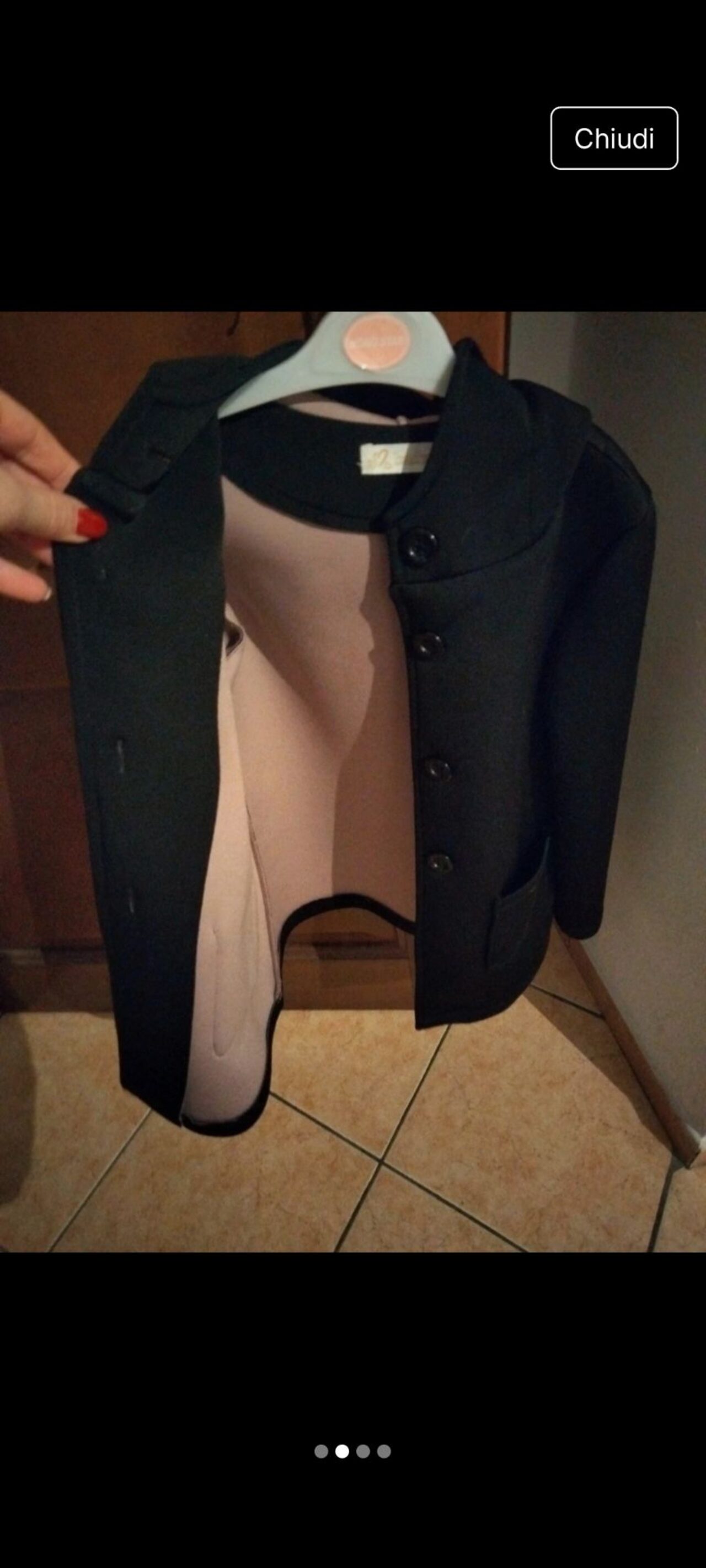 Cappotto bimba tg 8 anni in neoprene, morbido, colore nero interno rosa antico, marca bachata, con cappuccio. .