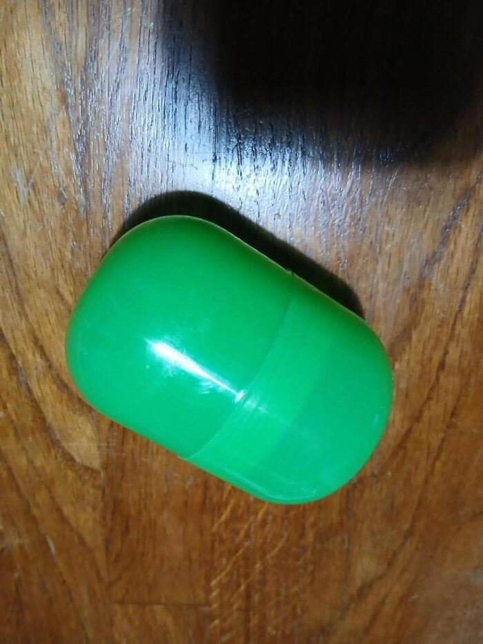 Conteneva la sorpresa dell''uovo di Pasqua. Diametro 4,5cm circa, lunghezza 7,5 cm. La sorpresa non c''è più. Di forma cilindrica, adatta per rielaborazione o quello che volete voi. .