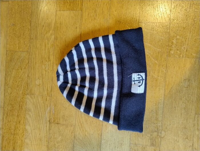 100% cotone, taglia 6/8 anni.Colore blù e bianco.Collettiva per Varese .