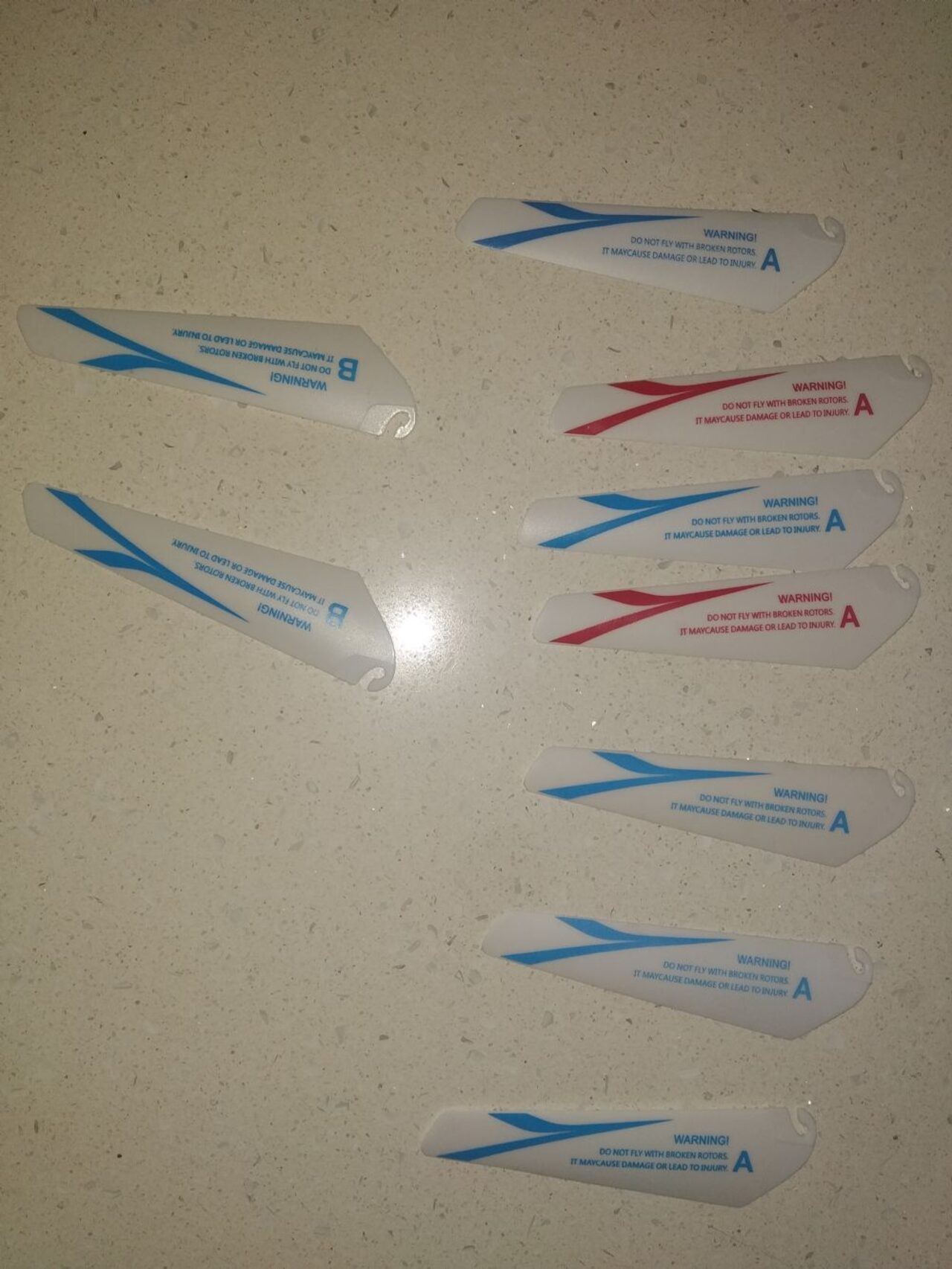 Eliche di ricambio, 7 A e 2BA noi si rompevano sempre le B ma i ricambi erano misti.Poi si è rotto l' elicottero...... .