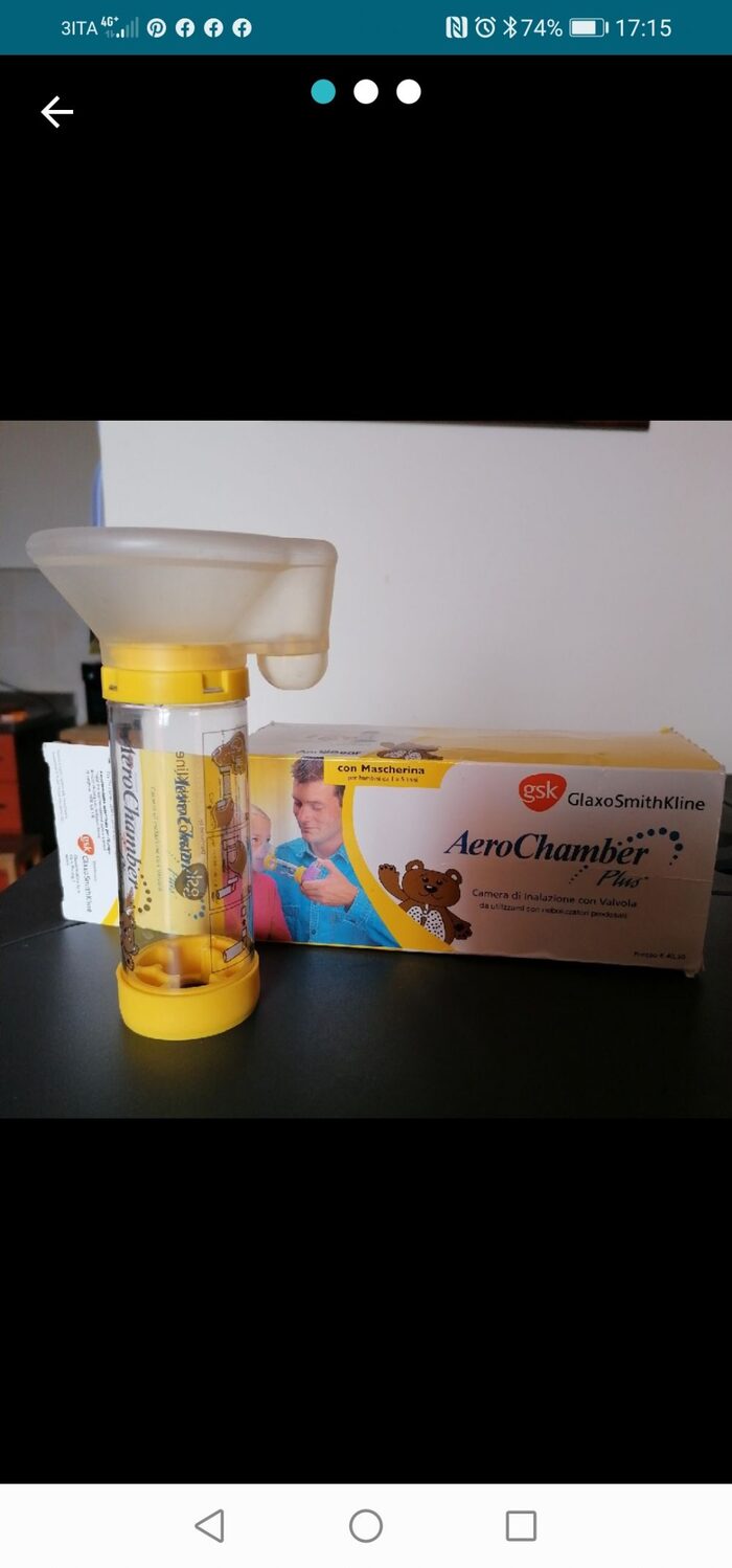 Dispositivo per somministrare ai bambini gli aerosol predosati. Misura 12 mesi/5 anni. Integro, da sterilizzare. Non ho le istruzioni ma si possono scaricare dal sito del produttore. .