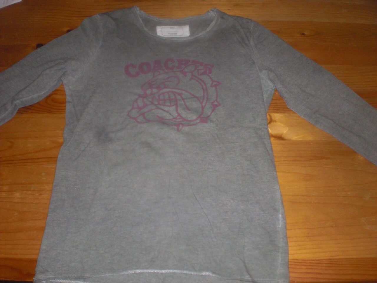 Maglia Tezenis grigia 6/7 anni manica lunga, cotone, spalle cm 30, ascelle cm 37 e lunghezza cm 48. La macchia è dovuta al flash. .
