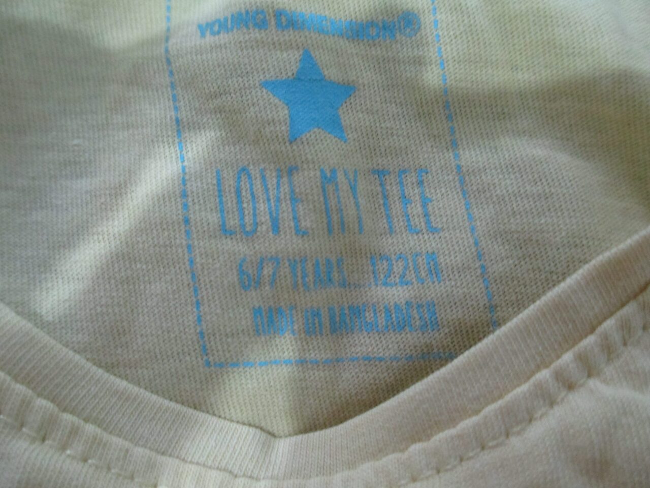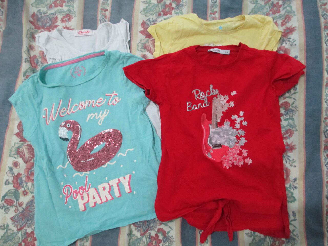 Quattro magliette a maniche corte per bambina.Taglia 122cm, 6/7 anni.100% cotone.Non divido. .