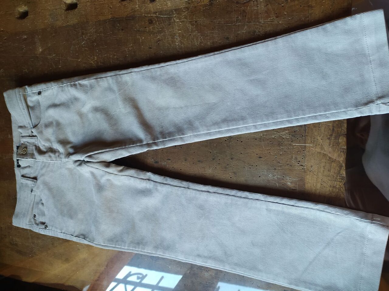In velluto a righine color ghiaccio, vita 32, lunghezza 75. .