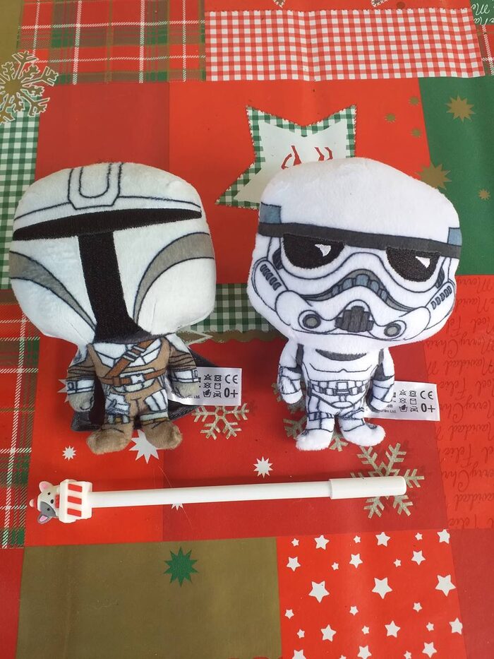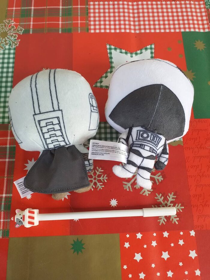 2 piccoli peluche star wars usati buone condizioni. La penna è per la misura .