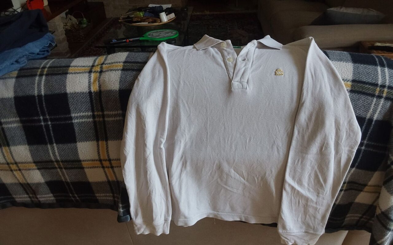 Polo manica lunga Benetton, bianca cotone, 9 anni .
