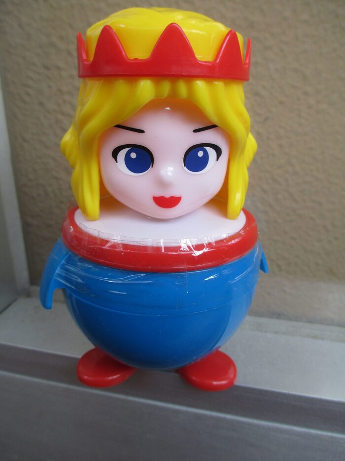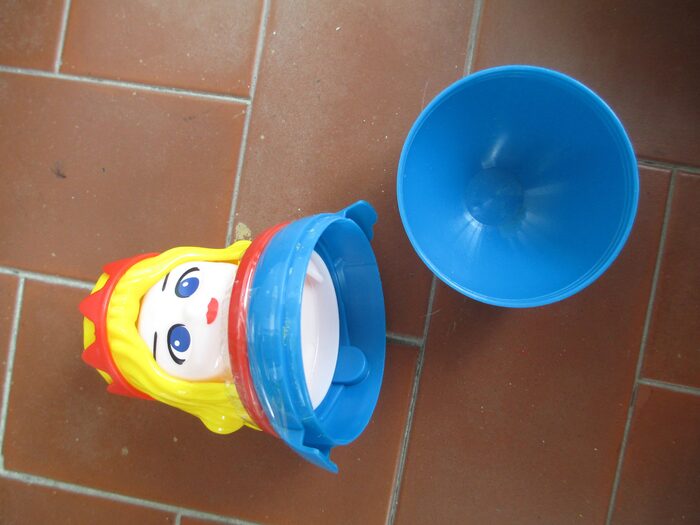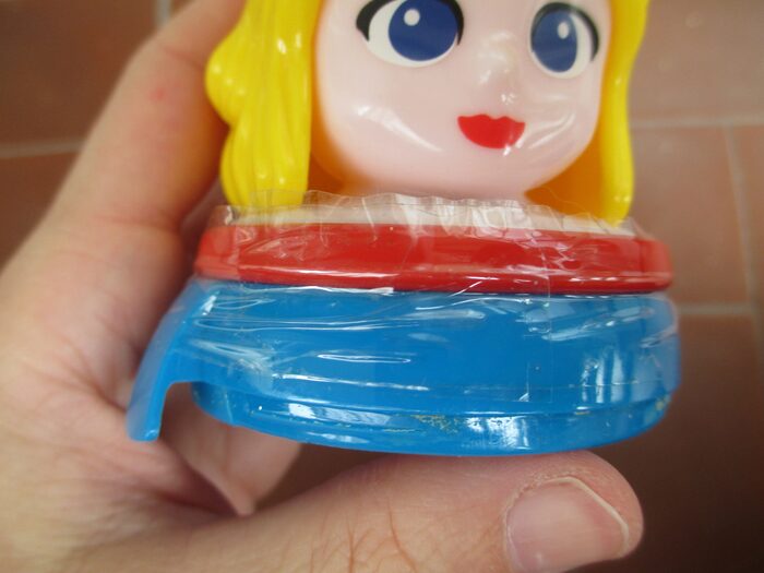 Principessa a contenitore.Intorno ha del nastro adesivo, non so se sia perché forse sia rotto. .