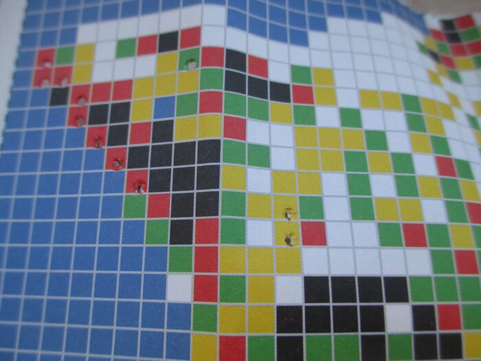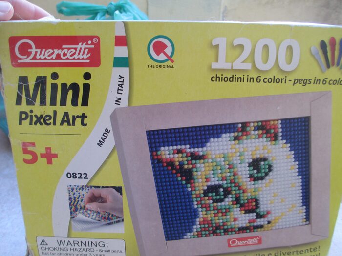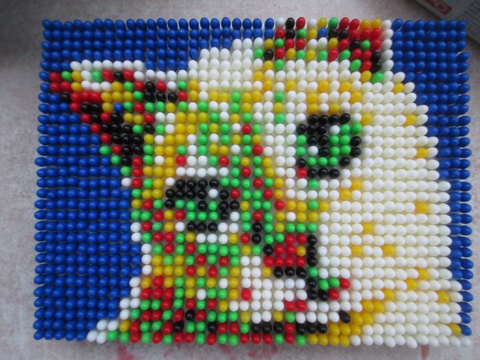 Quadretto con 1200 chiodini di sei colori.