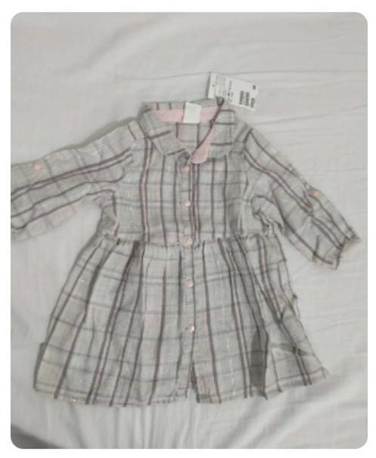 camicia H&M taglia 4-6 mesi, 68 cm.Le manichine si possono tenere giù oppure arrotolate con un bottoncino che le ferma.tessuto morbido, davvero carina e rifinitanuova, cartellinata, regalabile.