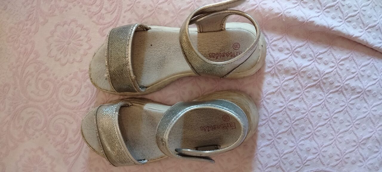 Sandali numero 35, colore argento suola un gomma. .