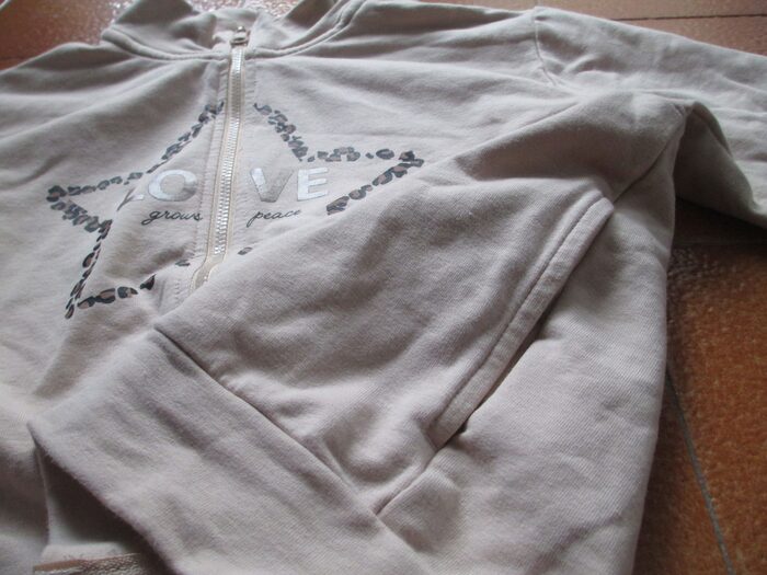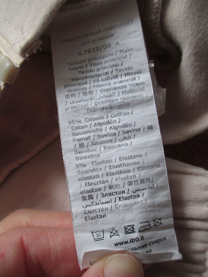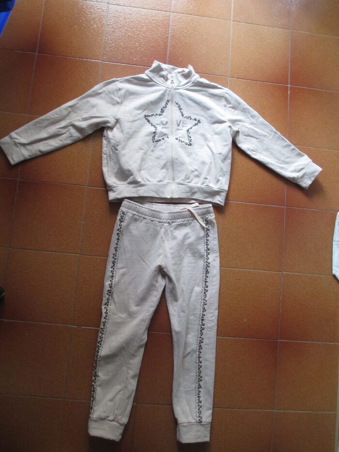 Tuta per bambina di 7 anni, taglia 122.95% cotone e 5% elastane. L'interno è felpato e ha due tasche. .