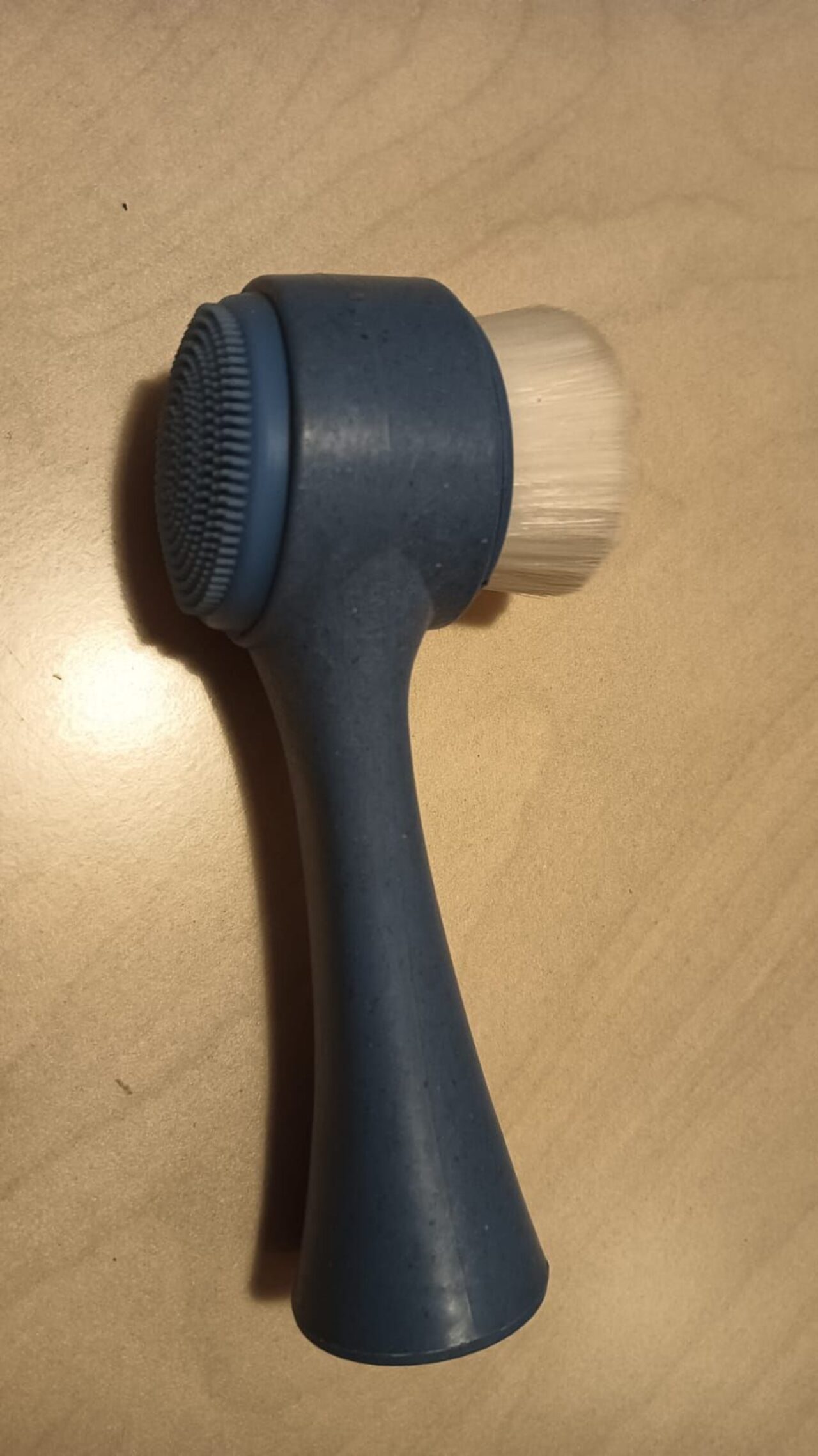 Spazzola Detergente Viso,non è stata mai usata ma è sprovvista di confezione è si sono sporcate le punte della spazzola di setole-Corpo in plastica le setole penso siano sintetiche .
