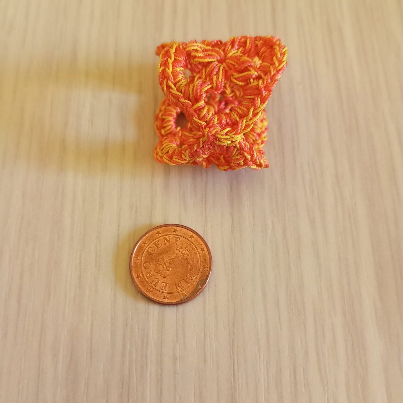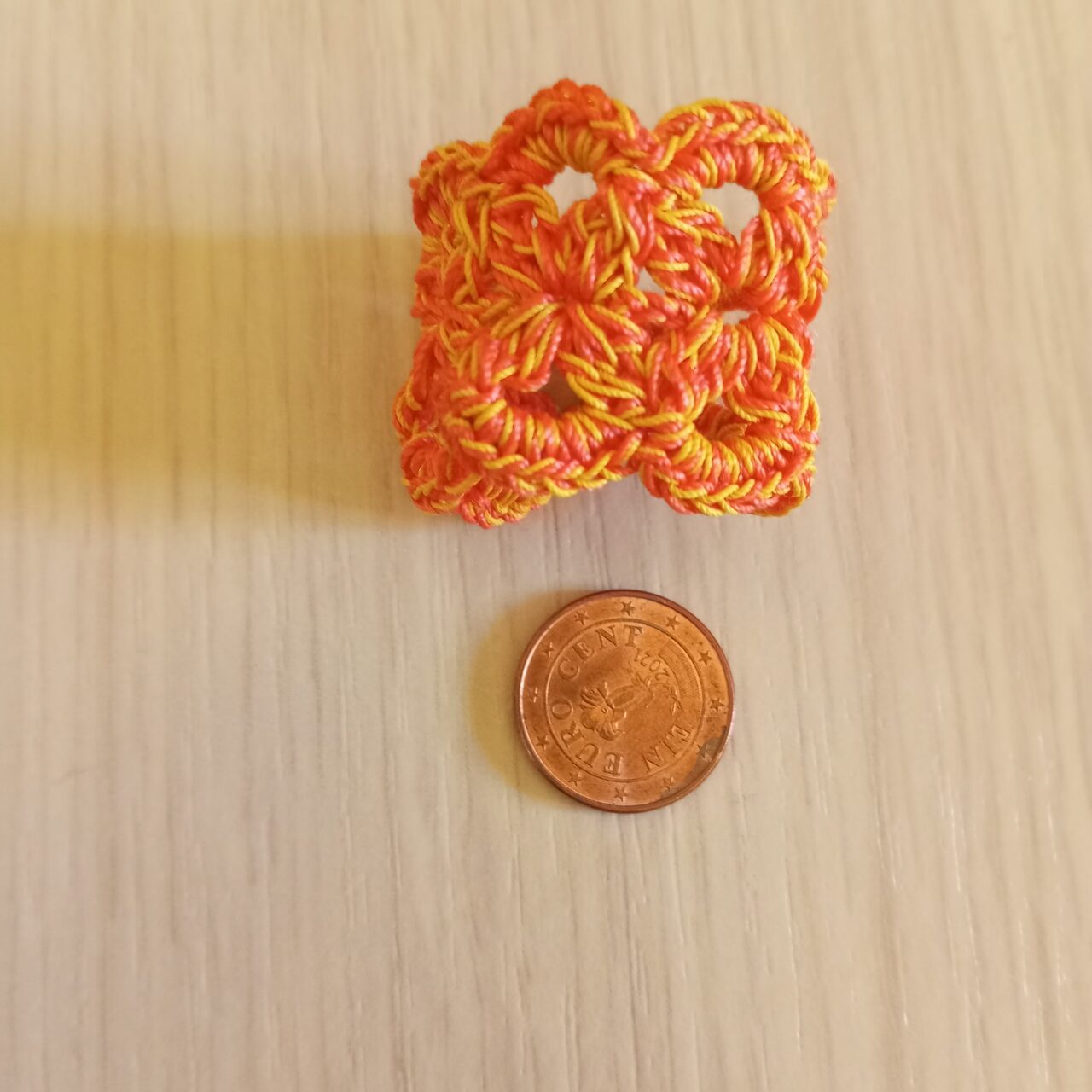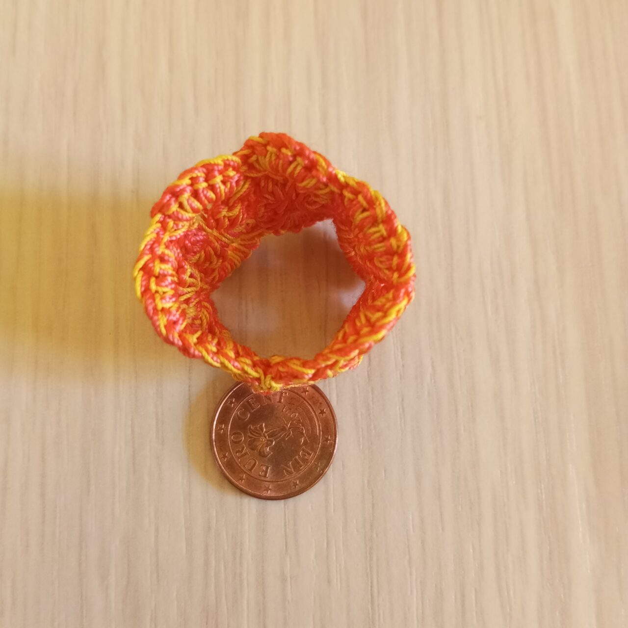 Anello in filo sottile lavorato da me all'uncinetto, original,lavabile ...Moneta per le proporzioni .