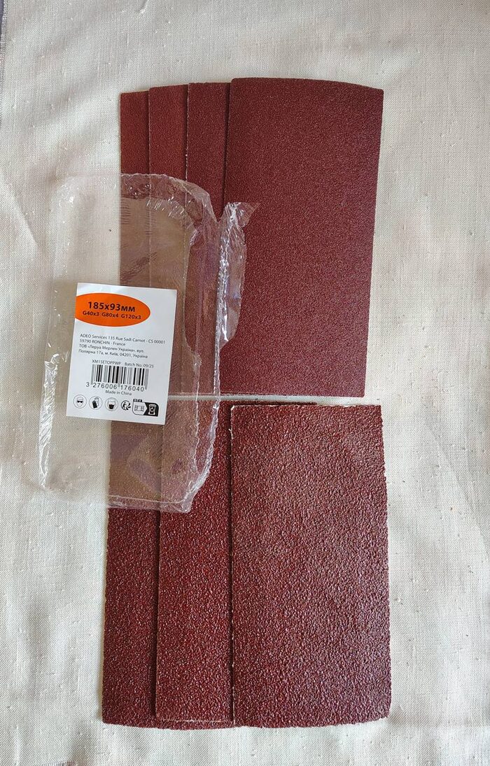 Carta vetrata:3 fogli grana grossa e 4 fogli grana media (vedi foto)Ho sbagliato l'acquisto mi serviva solo quella fine. .