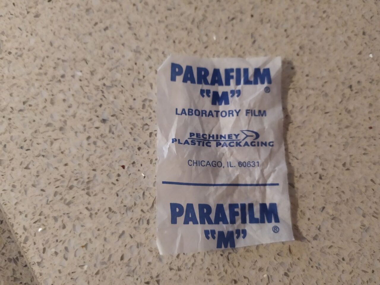Cerco un po' di Parafilm, la pellicola elastica non adesiva che serve a sigillare bottiglie e vasetti. Non me ne occorre molta, bastano una ventina di quadratini .