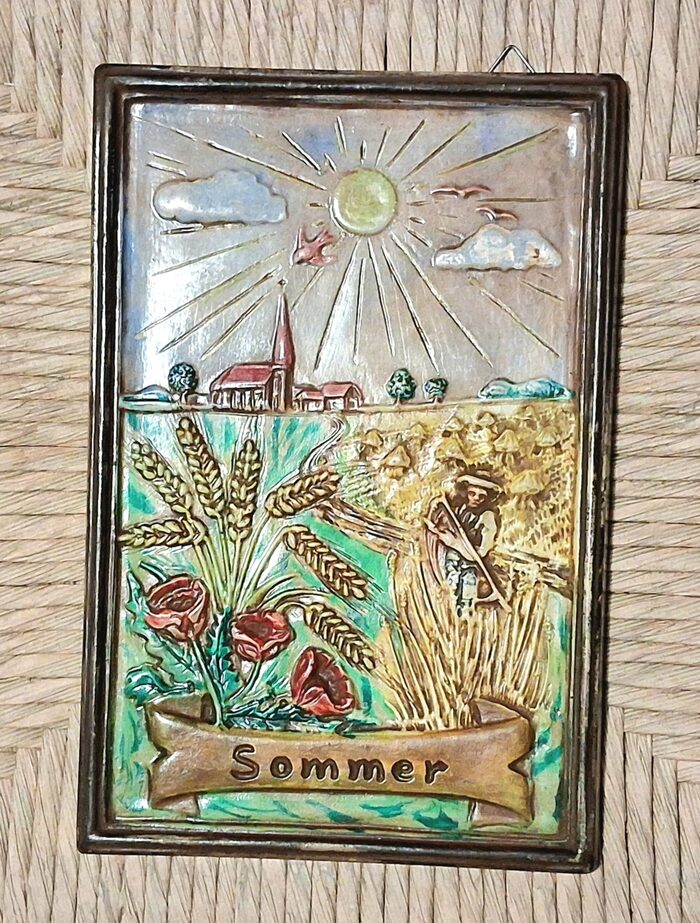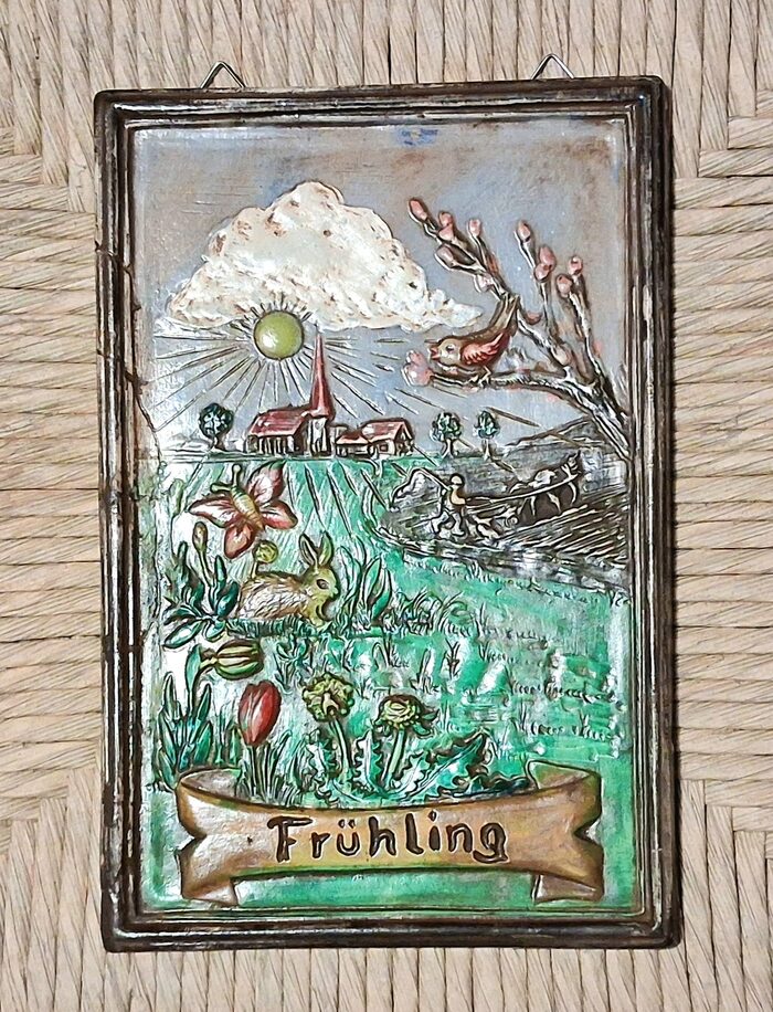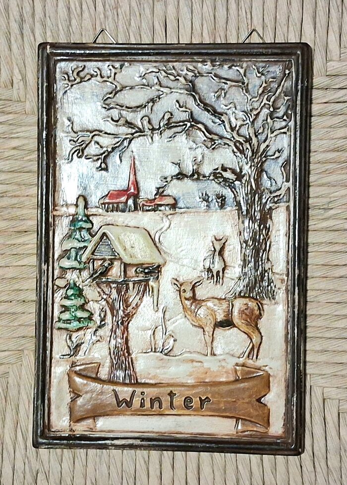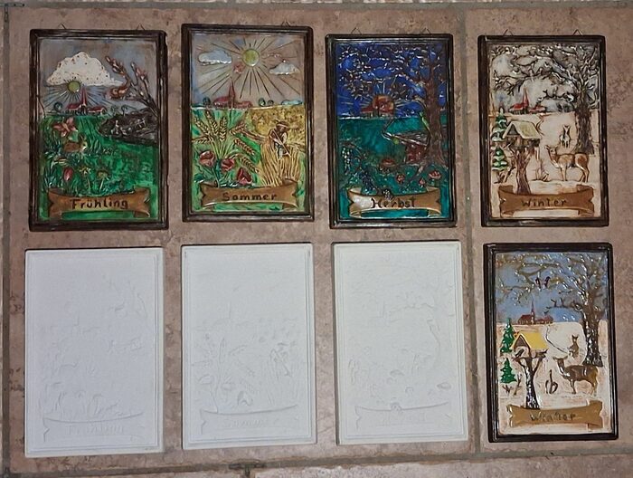 Quadretti della 4 stagioni, tre ancora da colorare, materiale gesso .