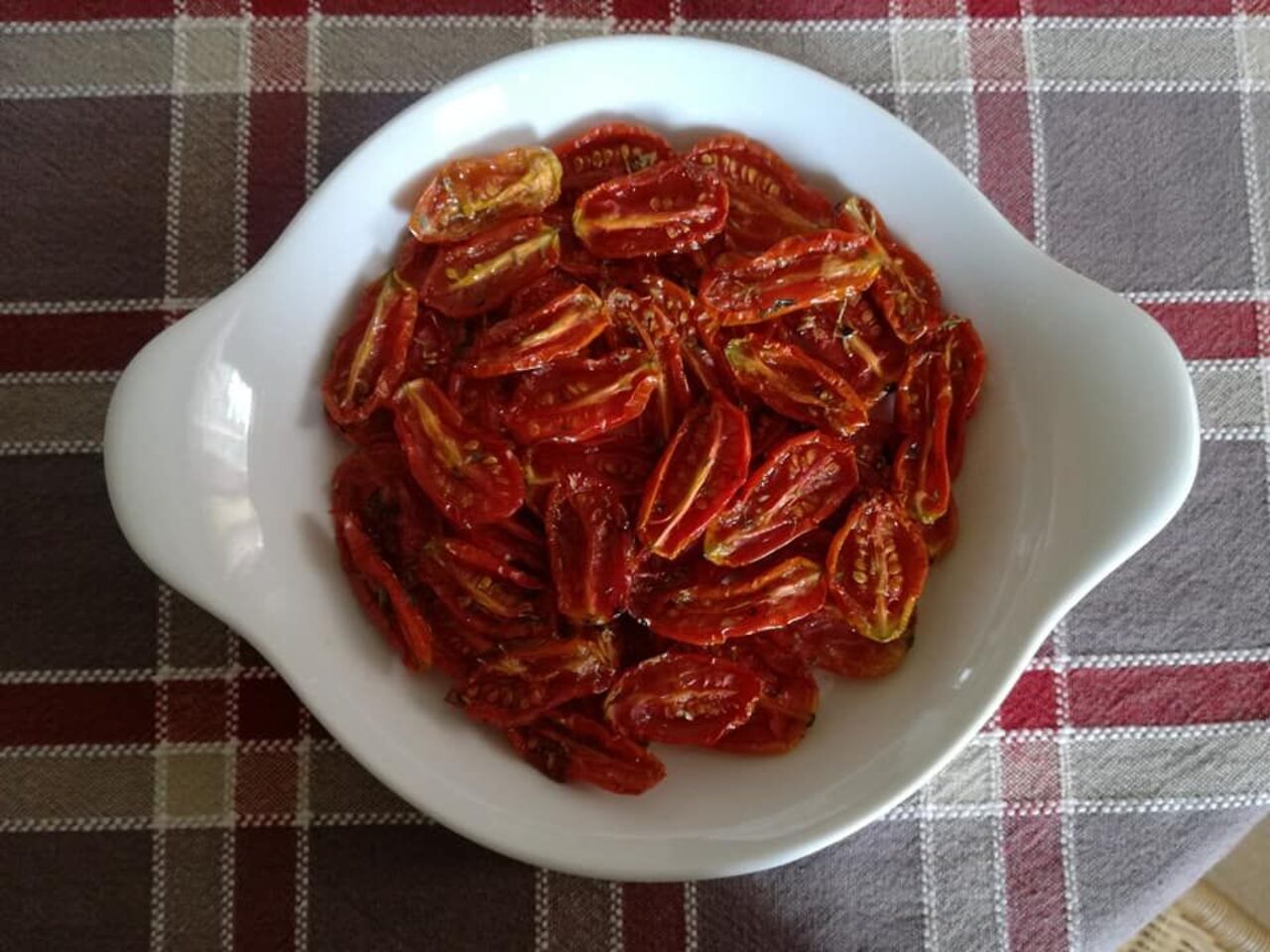 Ricetta della scorsa estate adattata in versione semplice e veloce: pomodorini lavati e tagliati a metà, una spolverata di origano, sale q.b., un filo d''olio extravergine e cottura lenta in forno facendo attenzione a che non si secchino troppo. PS I pomodori datterini del nostro orto sono già dolci e saporiti al naturale quindi in cottura si caramellano anche senza aggiungere una spolverata di zucchero! .