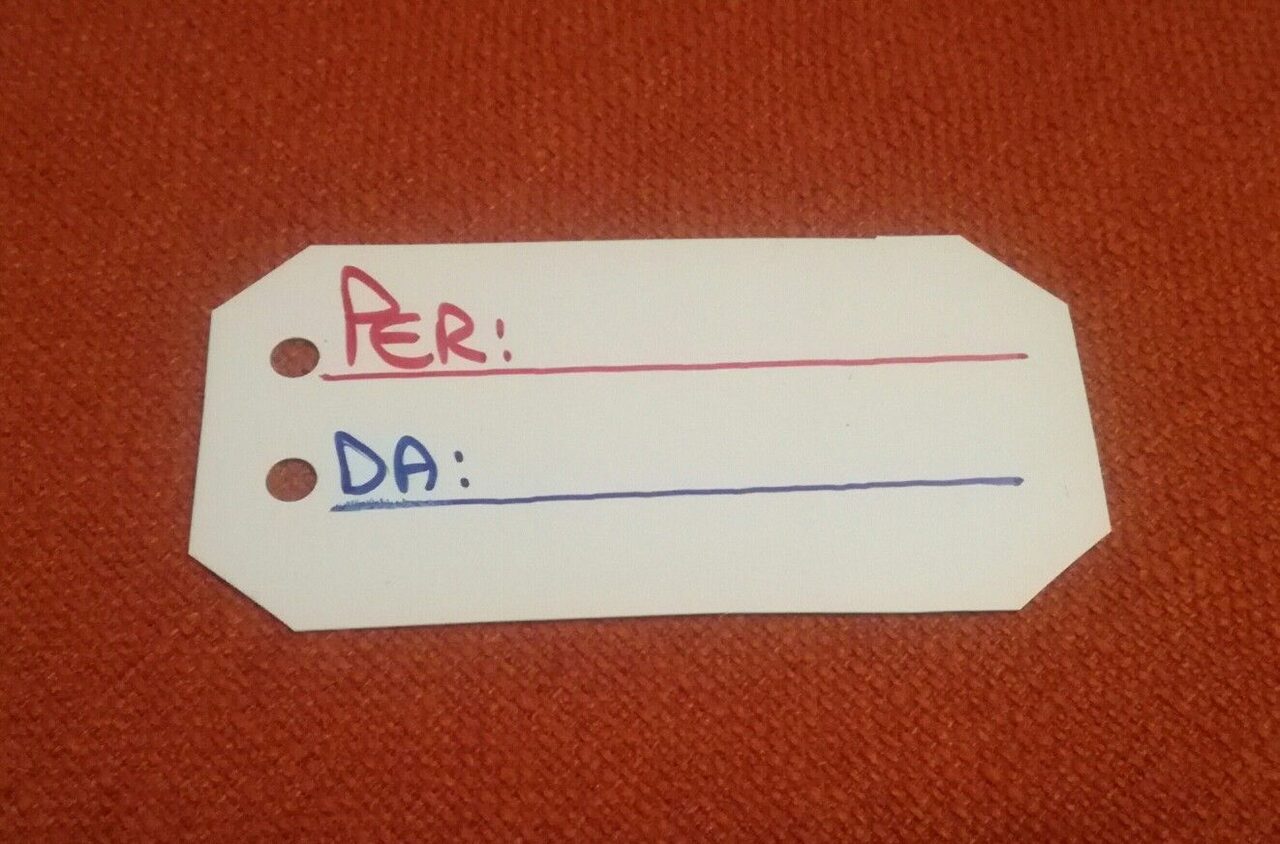 Ieri sera ho ripreso a cucire un po'' di sacchetti per confezionare gli scambi e ho provato a fare delle etichette, anche queste riutilizzabili per altri scambi:1. Ho ritagliato dei rettangoli da fogli di plastica rigida che avevo in casa, cercando di smussare tutti gli angoli per la sicurezza di chi maneggia i pacchetti;2. Con il perforatore ho fatto due fori per far passare il cordoncino a coulisse e assicurare l''etichetta al sacchetto (vedi esempio foto 1);3. Con pennarelli indelebili ho scritto il testo fisso e poi scriverò il resto a matita: in grande il nick del destinatario e sotto più in piccolo il mio nick come mittente;4. Chi riceve può riutilizzare il cartellino cancellando i nomi a matita con la gomma, se rimangono aloni basta passare una spugnetta umida. .