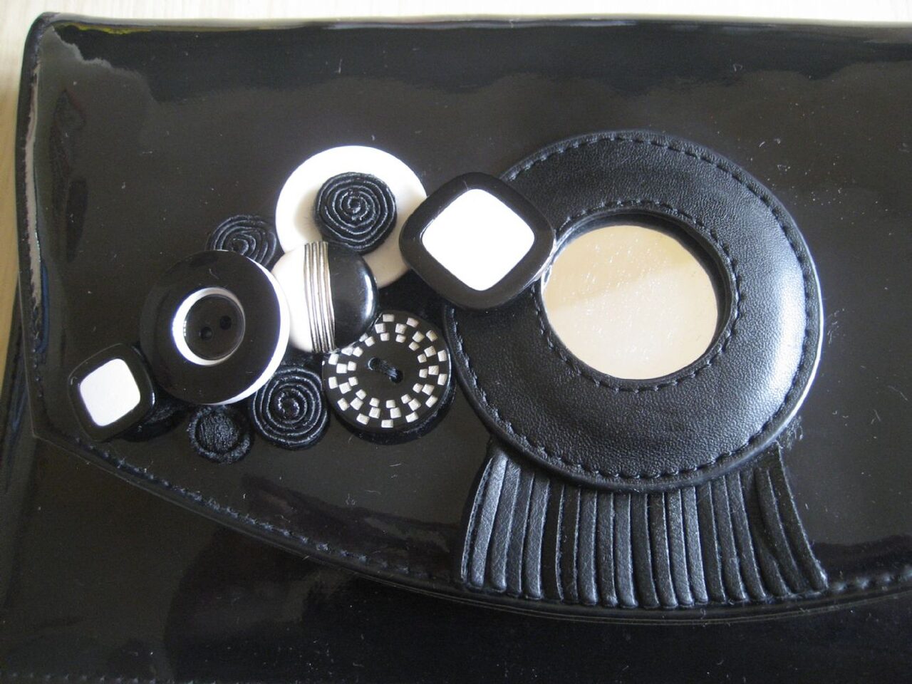 Tra le molte esperienze di scambi e rielaborazioni,anni fa,per uno scambiomi è stata proposta una rielaborazione difficile...una pochette nera in vernice rovinata da recuperarefoto 1 rielaborata solo con cose recuperatefoto 3 com''era .