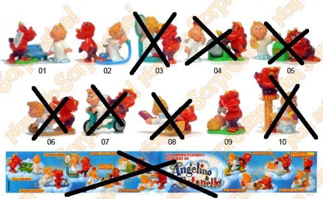sorpresine kinder cerco:1-personaggi completi2-personaggi completi5-angelino o personaggi completi .