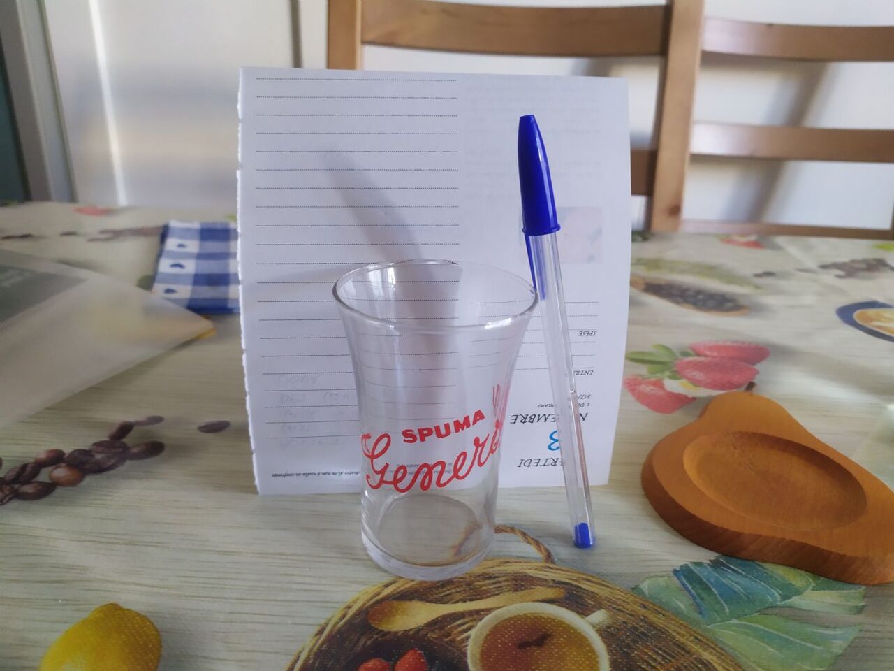 Bicchiere in vetro con la pubblicità della spuma Generosa, inizio anni Sessanta, mi sembra nuovo. Diametro 6, altezza 9,5 cm .
