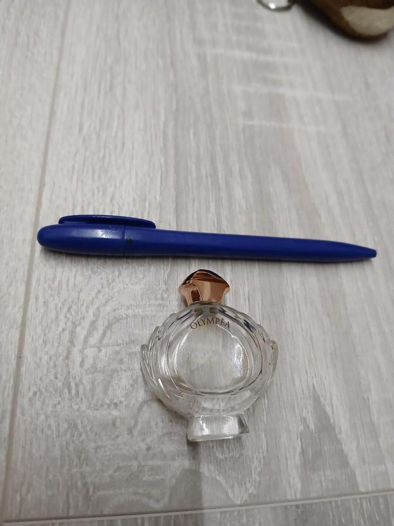 Boccetta profumo vuota Olympea. Penna per le dimensioni. Materiale vetro. .