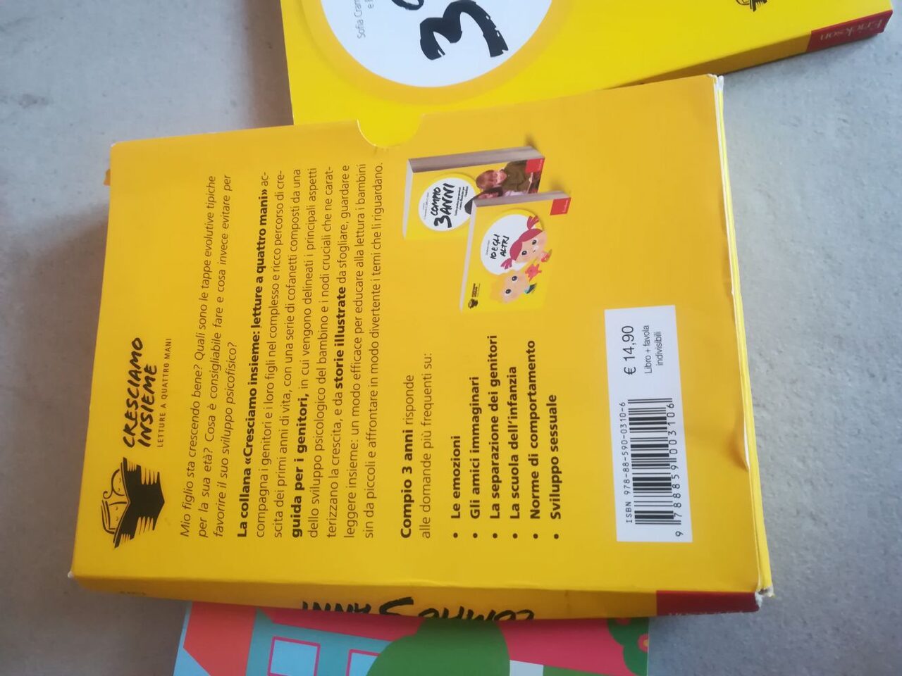 Libro con guida per i genitori "Compio tre anni". Prezzo di copertina 14,90€.La guida per i genitori mai sfogliata, il libro per bambini è bellissimo, contiene storie molto istruttive sul controllo della rabbia, la gelosia verso un fratellino, ecc. Bei disegni e belle storie.Con qualche sbucciatura in copertina, ma può aiutare molti altri bambini .
