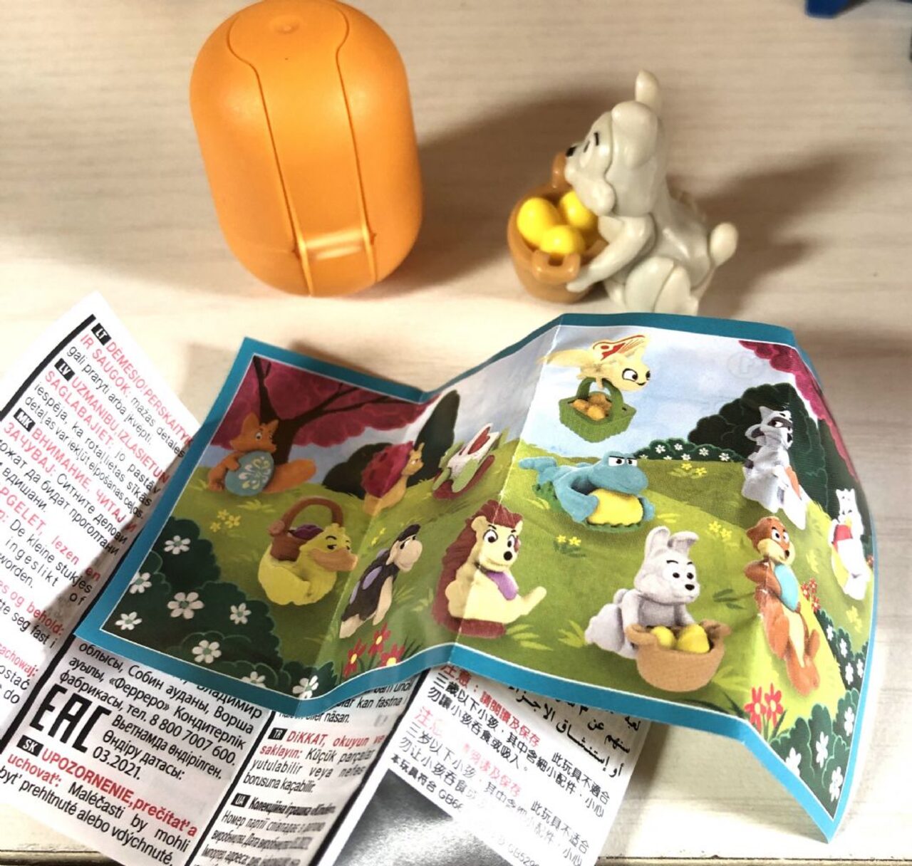 Sorpresina Kinder di qualche anno fa, degli ovetti ( soggetto Pasquale, ma degli ovetti, piccola)Montata ora per vedere se completaVU314Ovetto in plasticaCartineSorpresina: coniglietto con cesto con uova .
