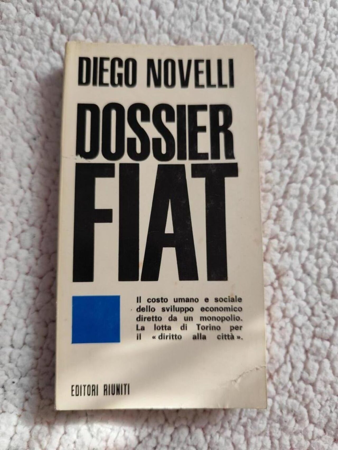 Libro Dossier Fiat di Diego Novelli; in buone condizioni, ha le pagine un po’ ingiallite e delle pieghe sulla costa, piccoli segni sulla copertina, edizione vintage del 1970 di Editori riuniti, in copertina flessibile e formato tascabile.Il costo umano e sociale dello sviluppo economico diretto da un monopolio. La lotta di Torino per il “diritto alla città”. .