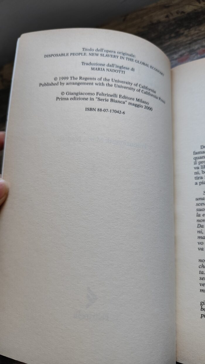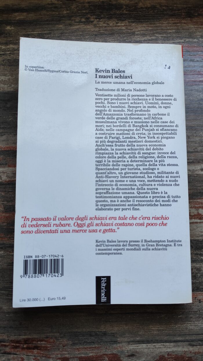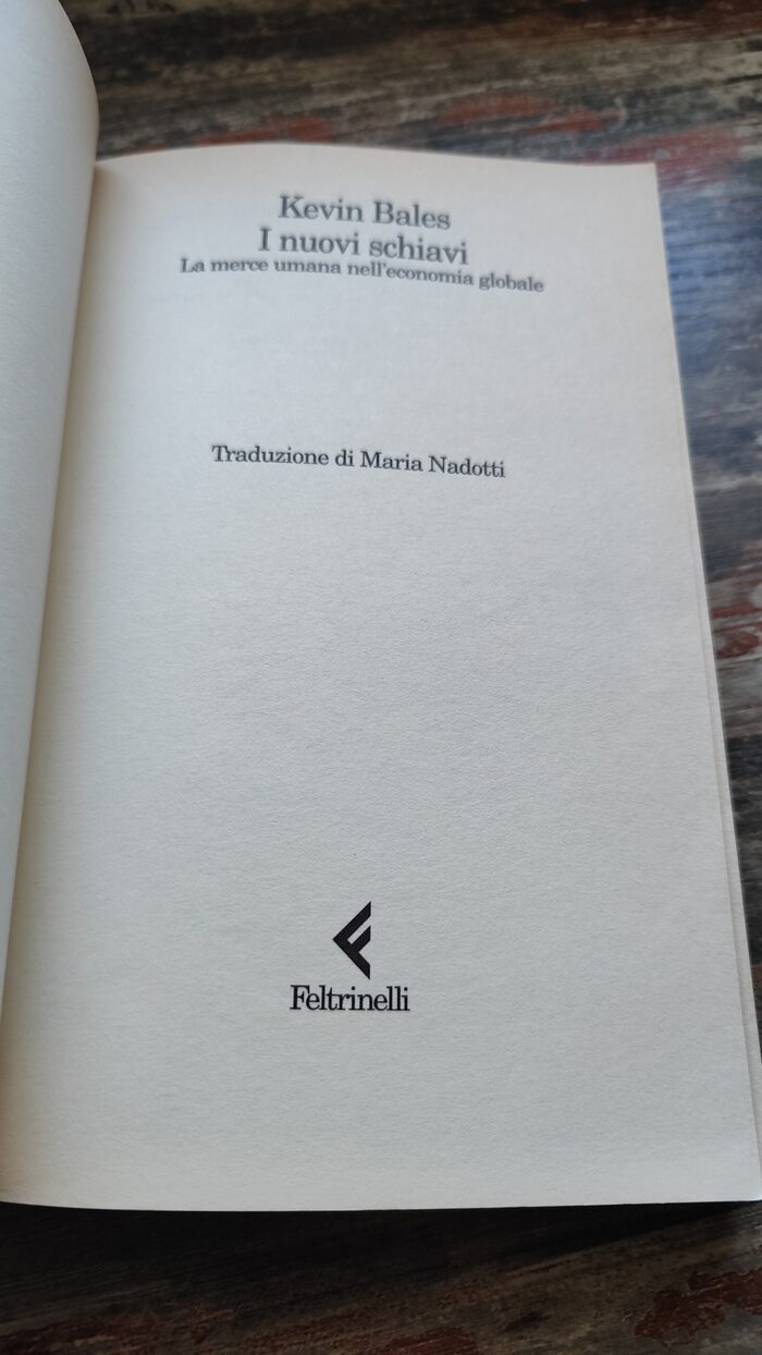 Libro "I nuovi schiavi La merce umana nell'economia globale" di Kevin Bales. Edizione Feltrinelli, copertina flessibile, vintage anni 2000, in ottime condizioni, pagine leggermente ingiallite.