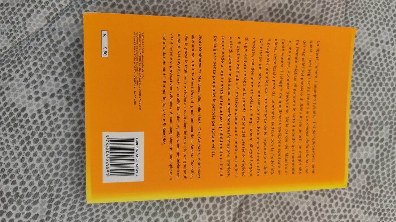 La libertà, l’amore, l’impegno sociale, i fini dell’educazione: sono questi i temi degli scritti raccolti in questo volume, uno dei capisaldi del pensiero di Jiddu Krishnamurti, un saggio che ha formato migliaia di persone in tutto il mondo.Nelle parole del Maestro si sente vibrare il retaggio della millenaria tradizione spirituale indiana, rivitalizzato però dal confronto audace con la modernità, il progresso tecnologico, la coscienza delle ingiustizie e delle sofferenze del mondo contemporaneo. Krishnamurti non offre risposte, ma domande stimolanti. E agli uomini di ogni luogo e di ogni cultura ripropone la grande lezione del pensiero religioso e filosofico dell’India: è possibile cambiare il mondo, ma solo a patto di operare in se stessi una profonda trasformazione interiore, rinunciando a ogni consolante certezza prefabbricata al fine di perseguire senza pregiudizi la propria personale verità.
