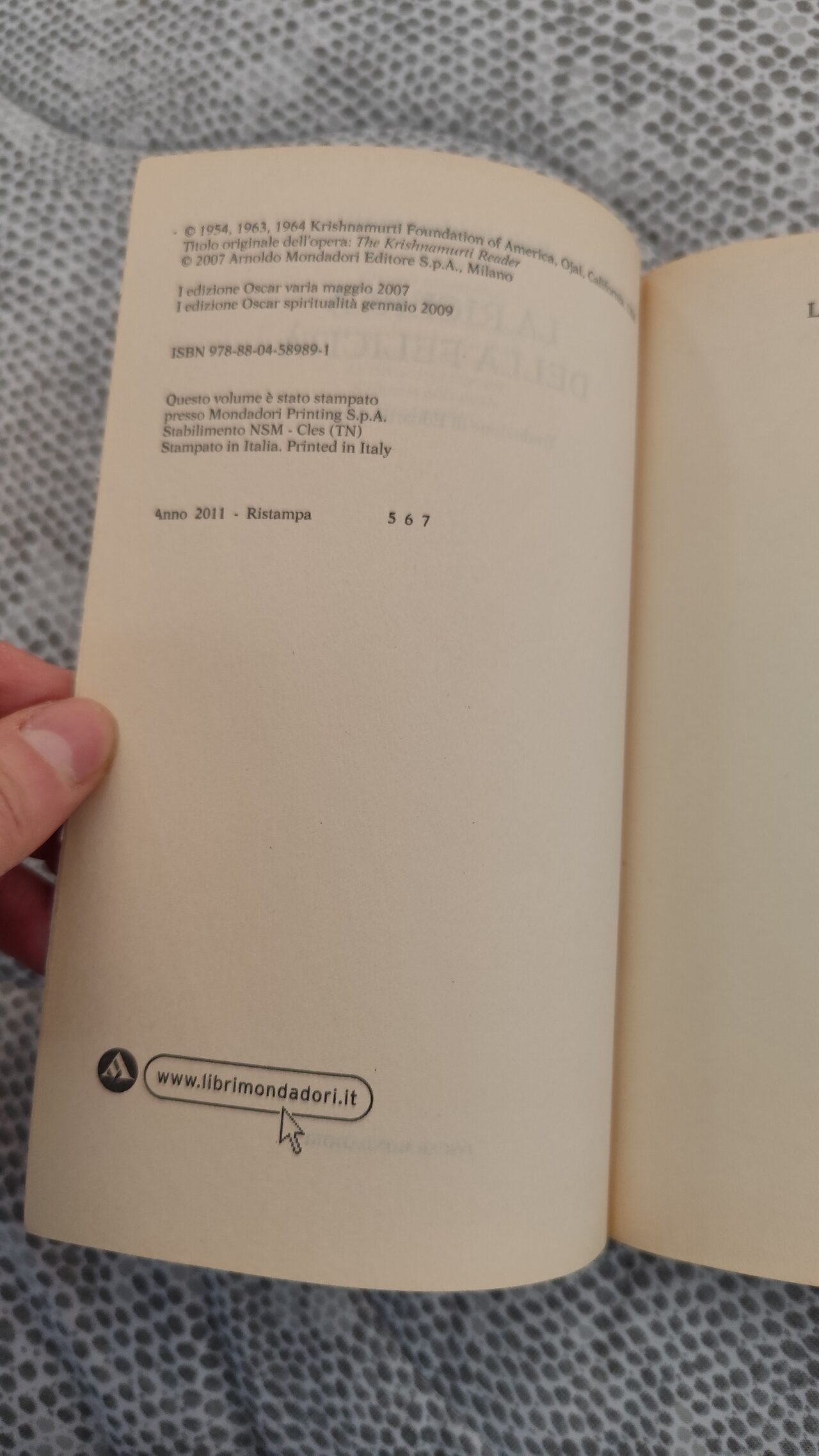 Libro "La ricerca della felicità" di Jiddu Krishnamurti, edizione 2011, copertina flessibile, oscar Mondadori, ottime condizioni, leggermente rovinato agli angoli.
