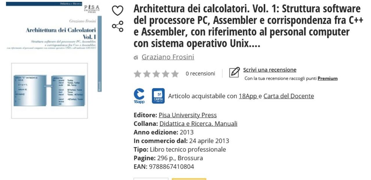 Disperatamente cerco tre volumi di Informatica, livello universitario. Si tratta di: Architettura dei Calcolatori.Vol. I, II e III. Tutti e tre ovviamente. Autori: Graziano Frosini, Giuseppe Lettieri. Università di Pisa. Se non fosse possibile questi, vanno bene al limite anche altri volumi di altri autori, ma sempre inerenti allo stesso argomento, ossia: architettura (struttura) dei calcolatori, con riferimenti hardware e software. Chi mi aiuta? vanno bene anche testi usati, sottolineati, già utilizzati purché leggibili ed in buone condizioni. Al limite anche dispense afferenti al tema. Ripeto: livello universitario, non 'user friendly' ossia manabili per non esperti. Grazie!!! .