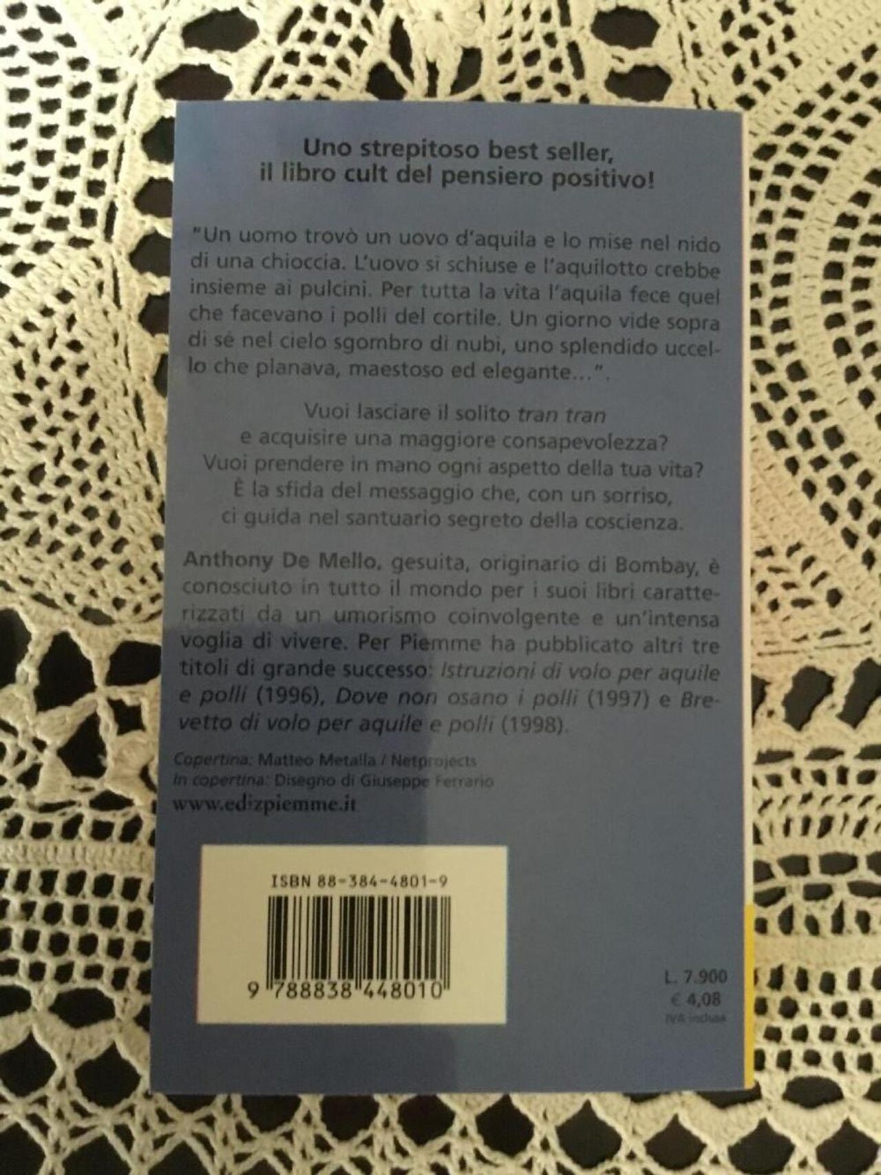 Libro di Anthony De Mello “Messaggio per un’aquila che si crede un pollo”. Buone condizioni.Edizione Piemme Pocket, 208 pagg. .