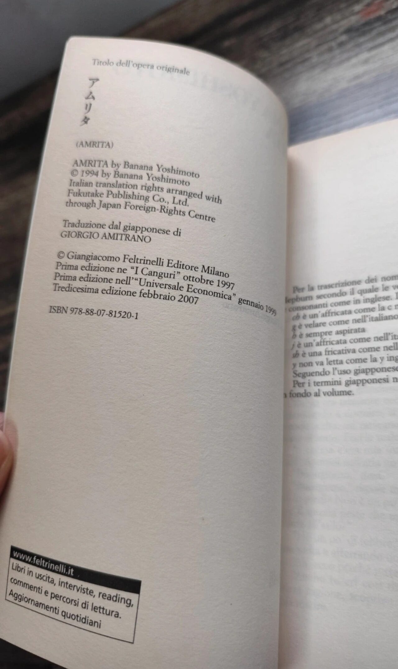Libro Amrita di Banana Yoshimoto, edizione Economica Feltrinelli in copertina flessibile, ottime condizioni, come da foto.