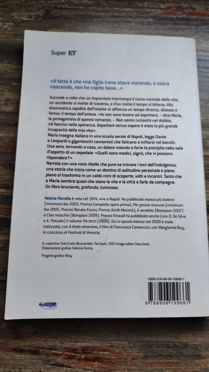 Libro “Lo spazio bianco” di Valeria Parrella, edizione Einaudi 2010, copertina flessibile, ottime condizioni, leggermente rovinata la copertina.