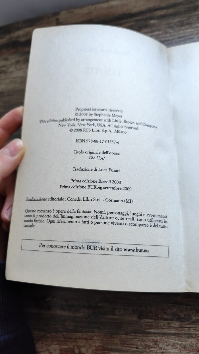 L' ospite libro di Stephanie Meyer, romanzo fantasy, edizione Rizzoli Bur Big, copertina flessibile, stampato nel 2009, ottime condizioni, un po' rovinata la copertina soprattutto agli angoli e in alcuni punti visibili in foto, pagine leggermente ingiallite.