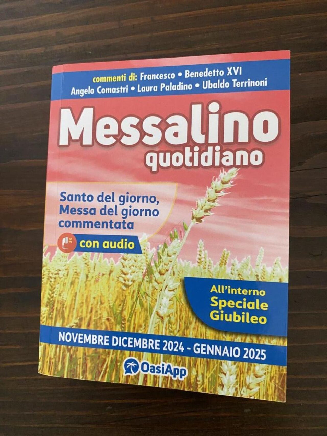 In questo Messalino Quotidiano trovi il Santo del giorno, la Messa del giorno commentata con audio, alcune piccole preghiere e invocazioni all’interno del testo, le preghiere del buon cristiano, il Santo Rosario e le preghiere del periodo. .