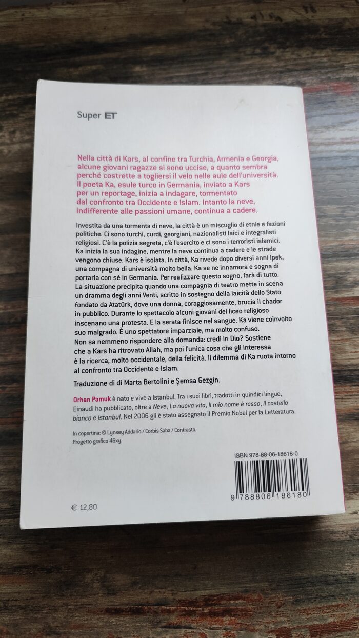 Libro “Neve” di Orhan Pamuk, edizione Einaudi, copertina flessibile, ottime condizioni, un po’ rovinata la copertina, pagine leggermente ingiallite.