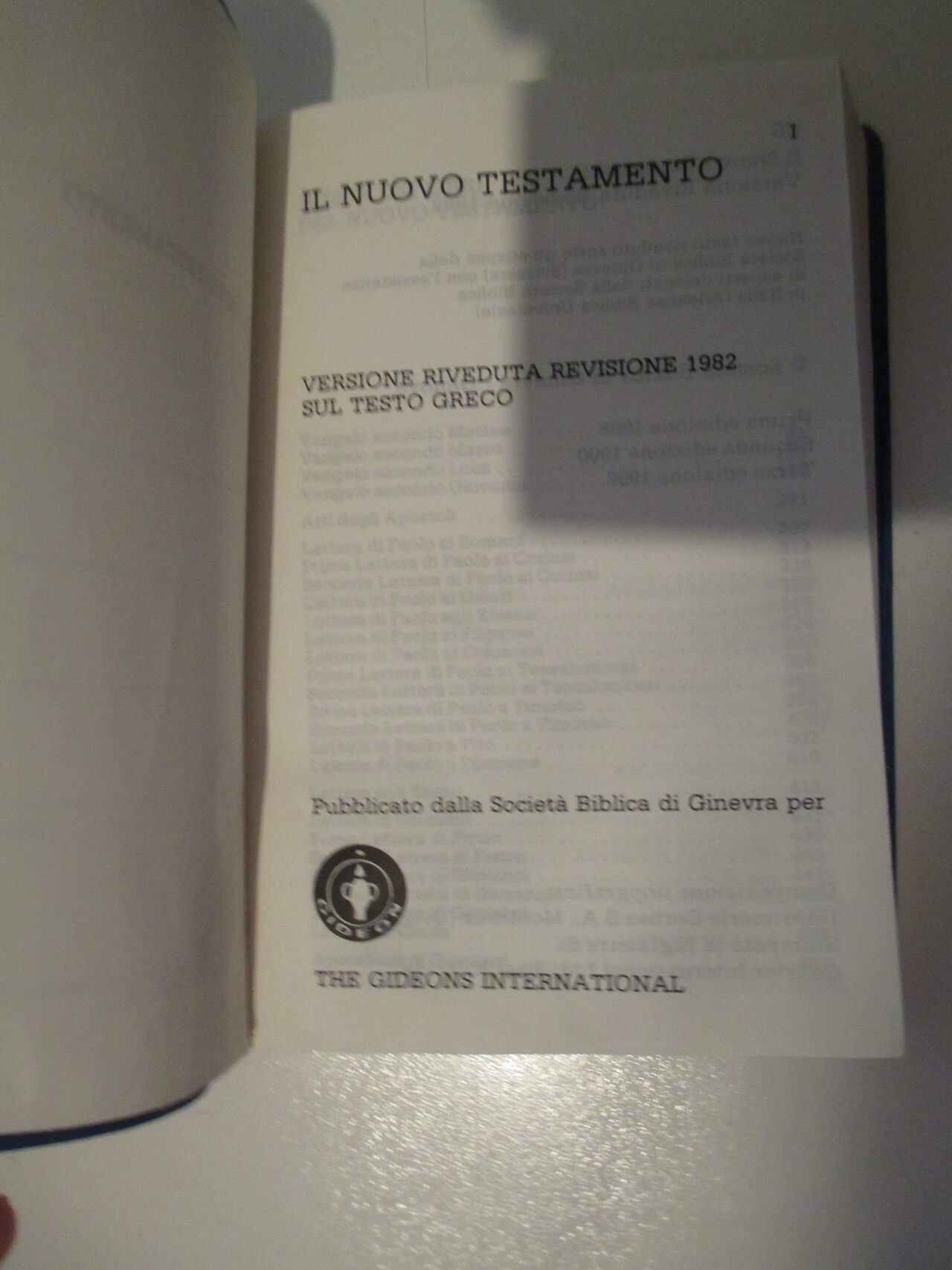Pubblicato dalla società biblica di Ginevra per The Gideons International.