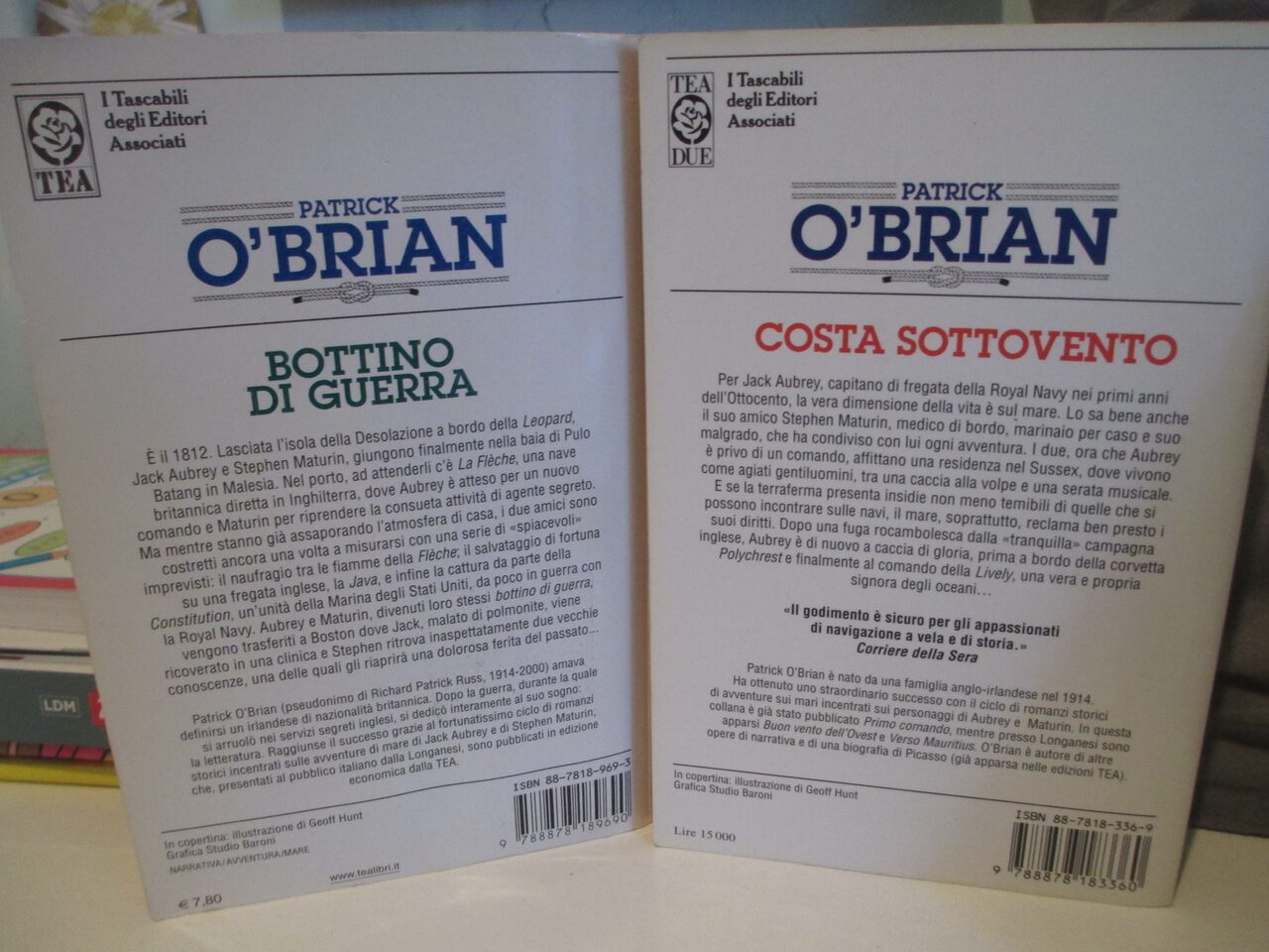 Due libri di Patrick O'Brian."Bottino di Guerra" e "Costa Sottovento". Editore TEA.Non divido. .