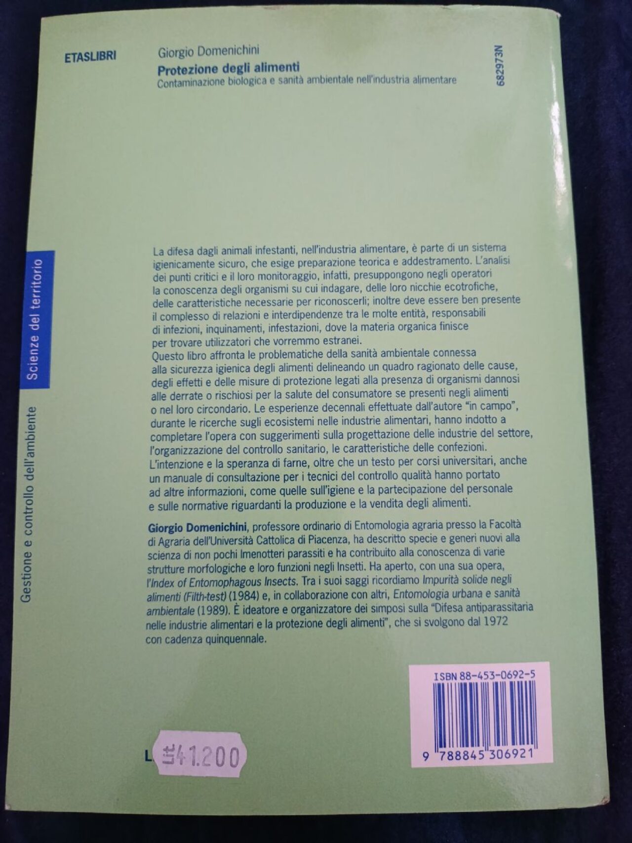 Libro universitario sulla contaminazione degli alimenti, ETAS libri 1996. Come nuovo .