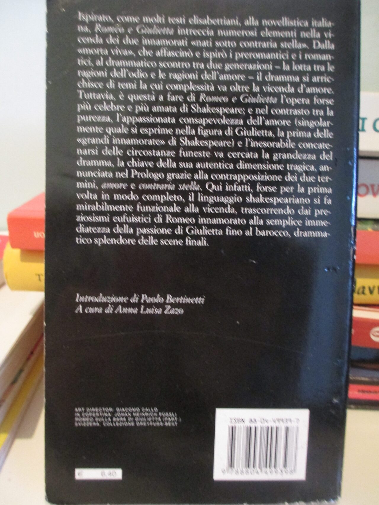 Libro dell'opera "Romeo e Giulietta" di Shakespeare.Con testo originale a fronte.Editore Mondadori. .
