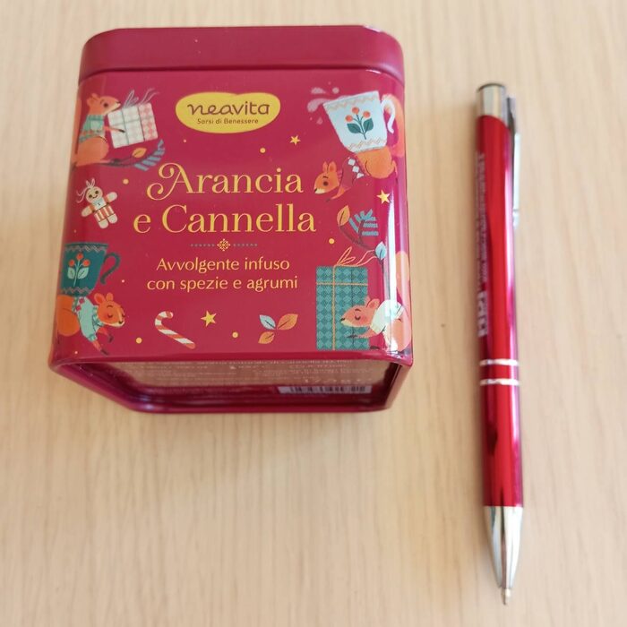 Deliziosa scatola di latta,solo svuotata, penna per le proporzioni .